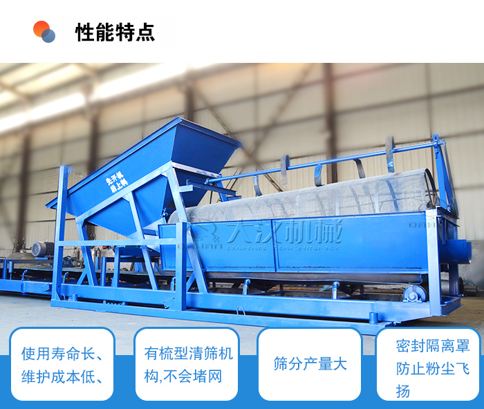 1、采用了滾動(dòng)輸送的原理,摩擦系數(shù)小、使用壽命長(zhǎng)、維護(hù)成本低、且篩孔不易堵塞;